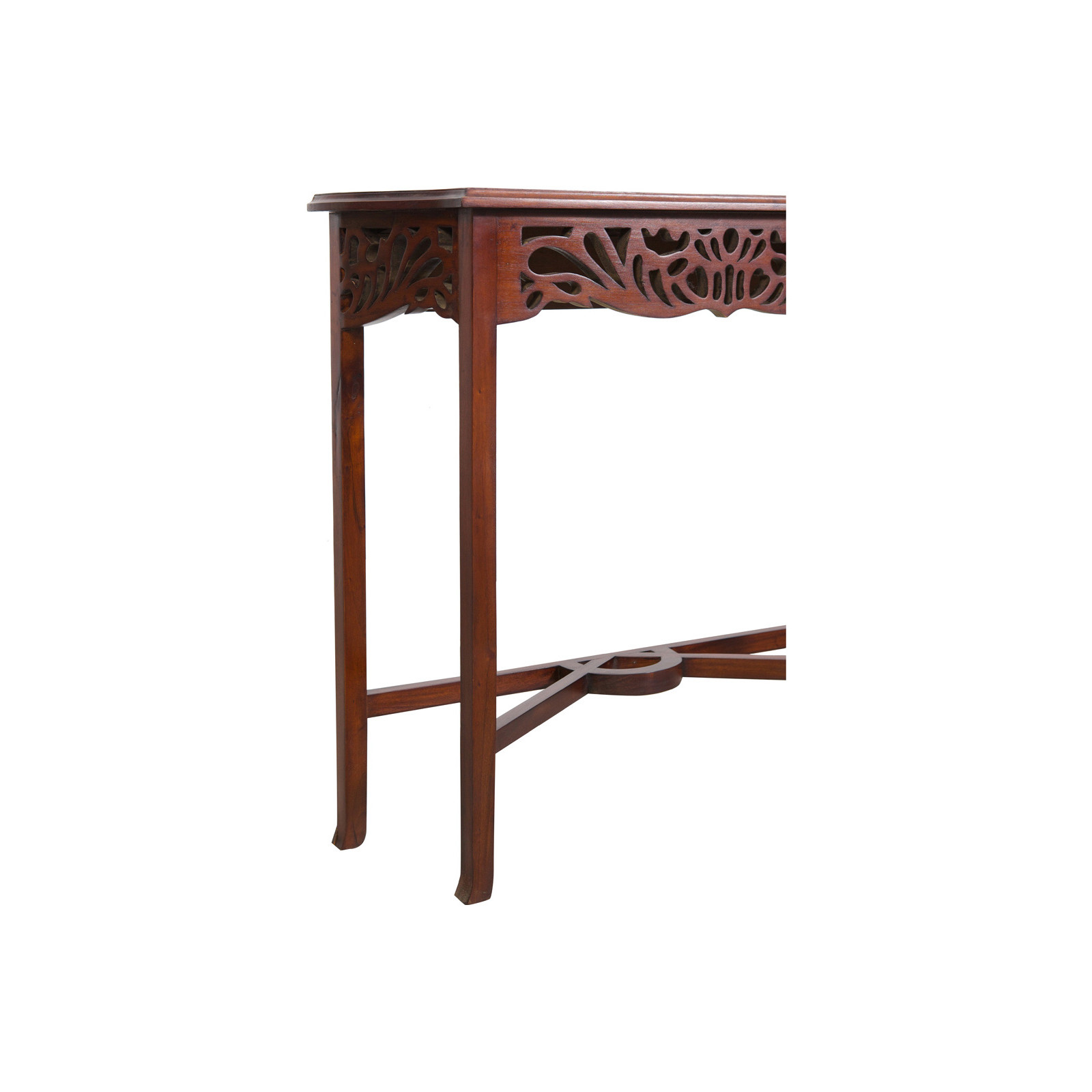 Consola Elisa de estilo colonial de dimensiones 80x25x75 cm de madera maciza de caoba totalmente tallado a la mano. Complemento ideal de mobiliario para cualquier ambiente