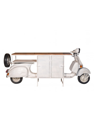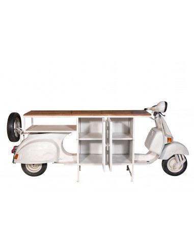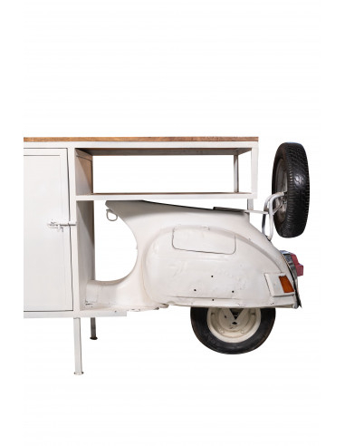 Consola hierro y madera, Vespa Ristrutturata como consola para el hogar, L252xPR68xH108 cm, acabado blanco antiguo