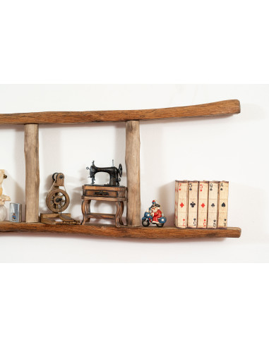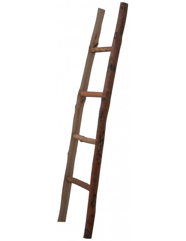 Medidas: largo 40 cm ancho 8 cm alto 150 cm- Material: madera- Escalera decorativa de madera. Se trata de una reproducción de las antiguas escaleras de campesinos, con los lados hechos de un solo tronco de árbol cortado por la mitad. Muy versátil, puede utilizarse para colgar toallas, ropa y bufandas. Está hecha a mano, por lo que cada escalera puede ser ligeramente diferente de otra en cuanto a su acabado. Apoyada en la pared hay suficiente separación para una ventilación adecuada para las toallas es un soporte ideal para colgar en el baño o en el dormitorio o el cuarto infantil. Compacto: toallero de pie para apoyar en la pared; se puede poner en la habitación que prefieras. Otro uso es como soporte para exponer y colgar pañuelos o corbatas o bolsos en las tiendas. Todas las medidas se refieren al tamaño máximo del artículo.