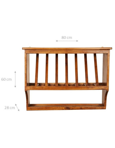 Escurridor de estilo Country de madera maciza de tilo acabado con efecto nogal 80x28x60 cm