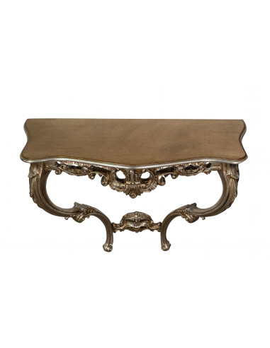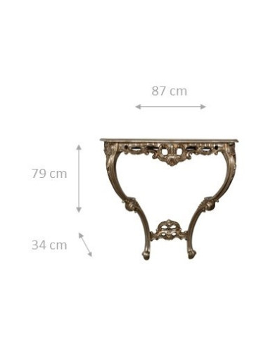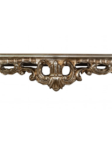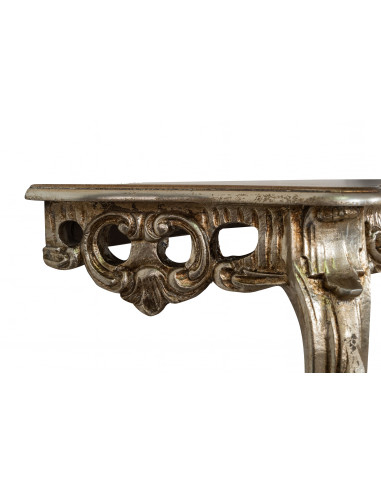 Mesa consola de 87 cm de longitud, 34 cm de profundidad y 79 cm de altura realizada en madera con acabado de hoja de plata antigua. Elaborado con esmero y acabado por antiguos artesanos florentinos. Ideal para enriquecer y decorar cualquier ambiente. Artículo fabricado íntegramente en Italia.