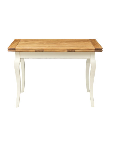 Mesa de comedor rectangular de dimensiones L120xPR80 xH80 cm de madera maciza de tilo extensible hasta 165 o 210 cm, gracias a sus pr cticas prolongas de 45 cm cadauna. Ideal para decorar con un toque de estilo r£stico attractivo cualquier entorno, garantizado por solidez y cualidad par la inconfundible lavoraci¢n artesanal Made in Italy.