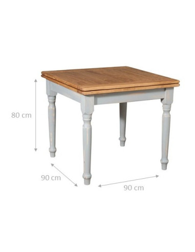 Mesa Rectangular L90xPR90xH80 cm de madera maciza de tilo . Gracias a la cómoda apertura a libro , se convierte en un grande plano de180 cm. Amuebla cada ambiente con un toque de estilo Country, garantizando cualidad y robustez que son típicos de la artesanía Hecha en Italia.