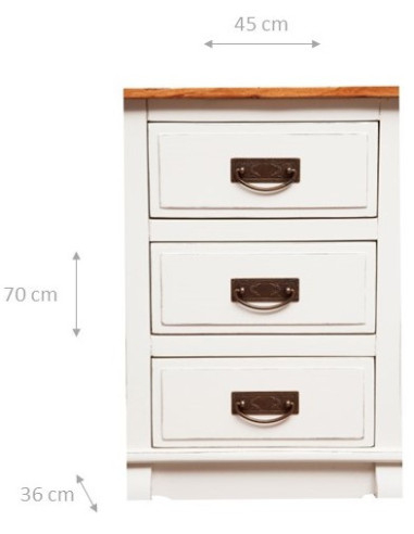 Versátilmesita de noche cajonera totalmente de madera maciza de tilo , de dimensiones 45x36x70 cm. Del sencillo estilo Country , dispone de tres amplios y prácticos cajones fabricados con las juntas de cola de milano y asas de latón. El meticuloso artesano de mano de obra en Italia, garantía de resistencia y durabilidad en el tiempo.