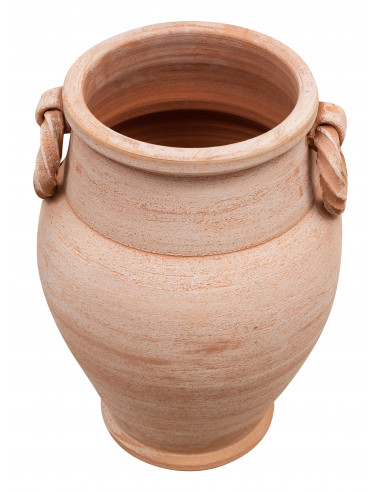 PARAGÜERO. ÁNFORA/ORCIO CON ANILLOS EN TERRACOTA HECHO A MANO SOBRE EL TORNO PARA PLANTAS Y FLORES. L32XPR32XH46 CM