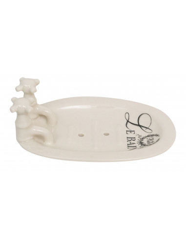 Jabonera vaciabolsillos de porcelana blanca para jabón con adornos "Le Bain Paris" 15x10x6 cm