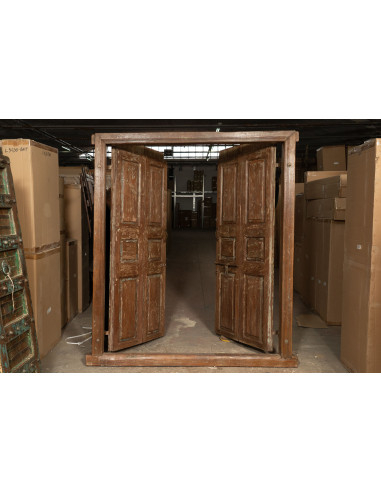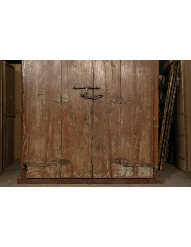 Puerta antigua de teca maciza de dimensiones 198 cm de longitud, 15 cm de profundidad y 220 cm de altura. Esta puerta procede de la demolición y restauración de importantes edificios antiguos. Finamente restaurada y tratada para su uso en exteriores, cada puerta es una pieza de verdadera antigüedad única. Todas las medidas se refieren a las dimensiones totales máximas del artículo.