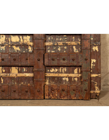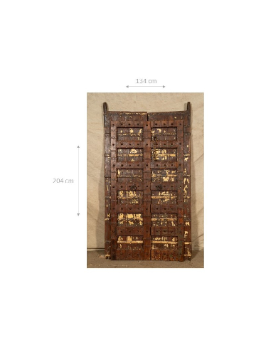Puerta corredera medieval antigua interior o exterior de madera maciza y hierro
