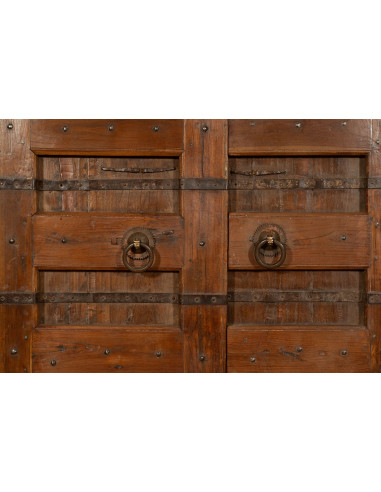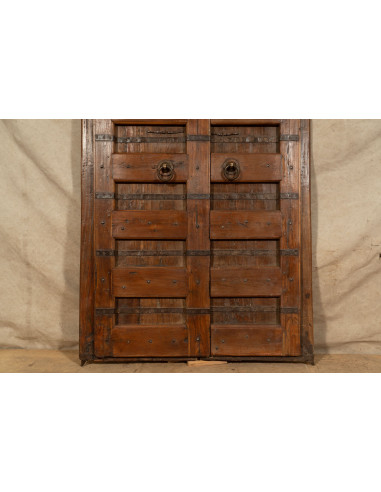 Puerta corredera medieval antigua interior o exterior de madera maciza y hierro
