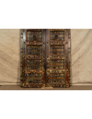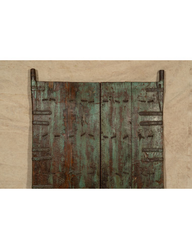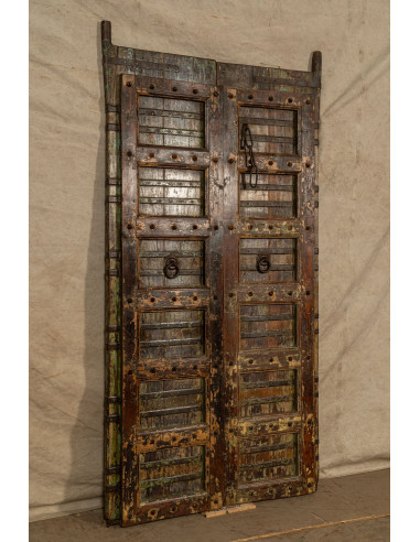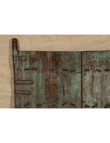 Puerta antigua de teca maciza con unas dimensiones de 112 cm de longitud, 12 cm de profundidad y 215 cm de altura. Esta puerta procede de la demolición y restauración de importantes edificios antiguos. Finamente restaurada y tratada para su uso en exteriores, cada puerta es una pieza de verdadera antigüedad única. Todas las medidas se refieren a las dimensiones máximas totales del artículo.