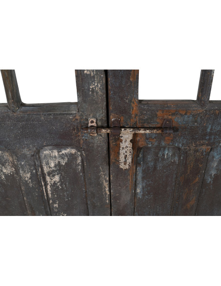 Puerta antigua de madera maciza de teca con unas dimensiones de 130 cm de largo, 5 cm de profundidad y 208 cm de alto. Esta puerta procede de demoliciones y recuperaciones de edificios antiguos e importantes. Finamente restaurada y tratada también para uso exterior, cada puerta es una pieza auténtica y única de antigüedades. Todas las medidas se refieren al tamaño máximo del artículo.