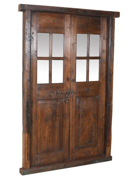 Puerta antigua de madera maciza de teca con unas dimensiones de 136 cm de largo, 10 cm de profundidad y 198 cm de alto. Esta puerta procede de demoliciones y recuperaciones de edificios antiguos e importantes. Finamente restaurada y tratada también para uso exterior, cada puerta es una pieza auténtica y única de antigüedades. Todas las medidas se refieren al tamaño máximo del artículo.