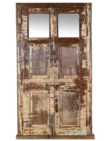 Puerta antigua de madera maciza de teca con unas dimensiones de 122 cm de largo, 10 cm de profundidad y 223 cm de alto. Esta puerta procede de demoliciones y recuperaciones de edificios antiguos e importantes. Finamente restaurada y tratada también para uso exterior, cada puerta es una pieza auténtica y única de antigüedades. Todas las medidas se refieren al tamaño máximo del artículo.