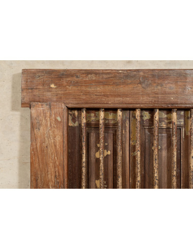 Puerta de reja de madera maciza y hierro envejecido con marco interior o exterior