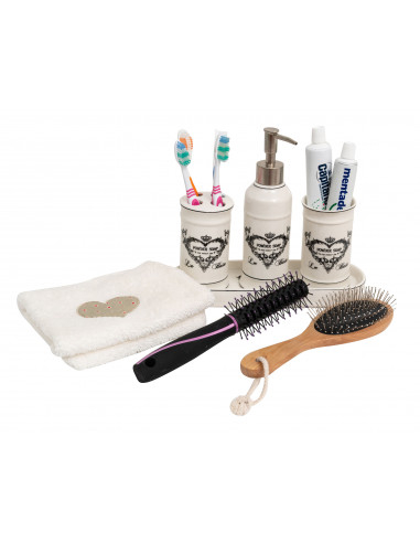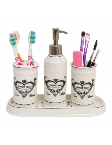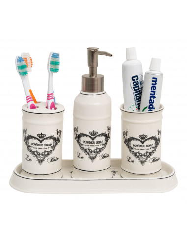 Set baño "Jabones Superfinos" 4 piezas de porcelana blanca decorada L25xPR10xH21 cm