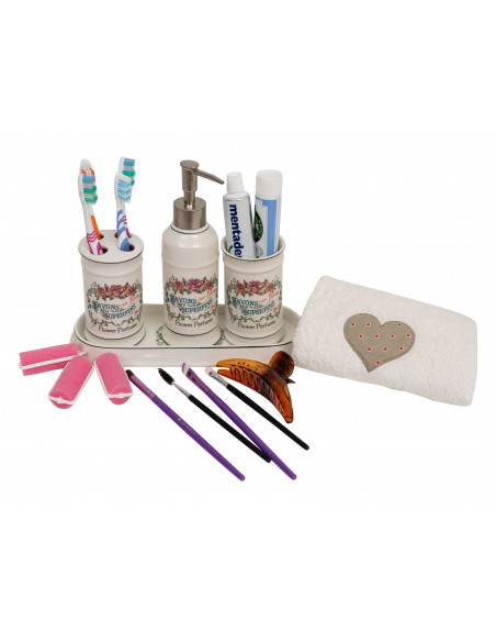 Set baño "Jabones Superfinos" 4 piezas de porcelana