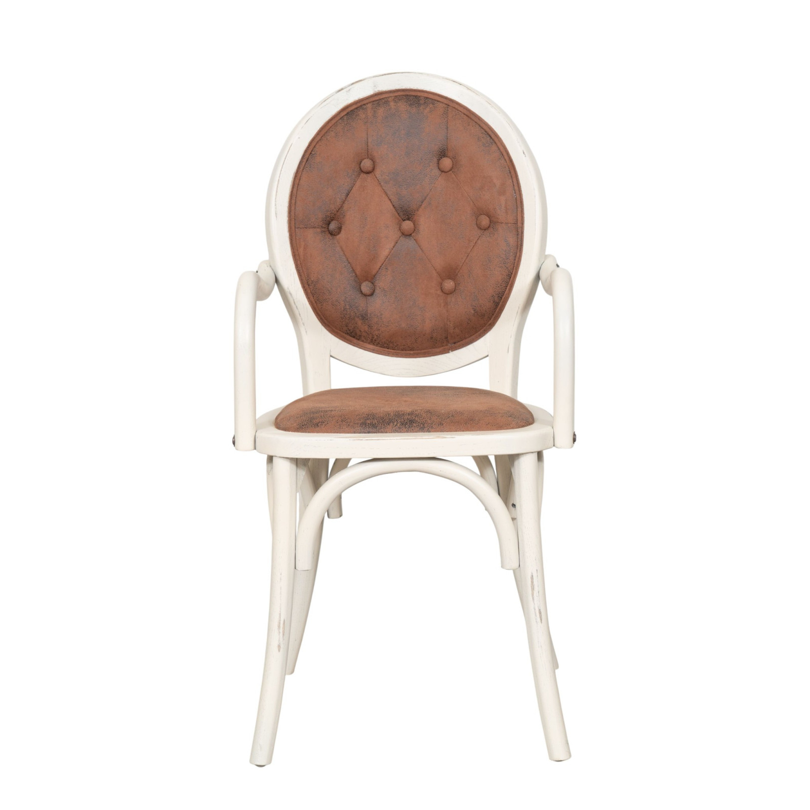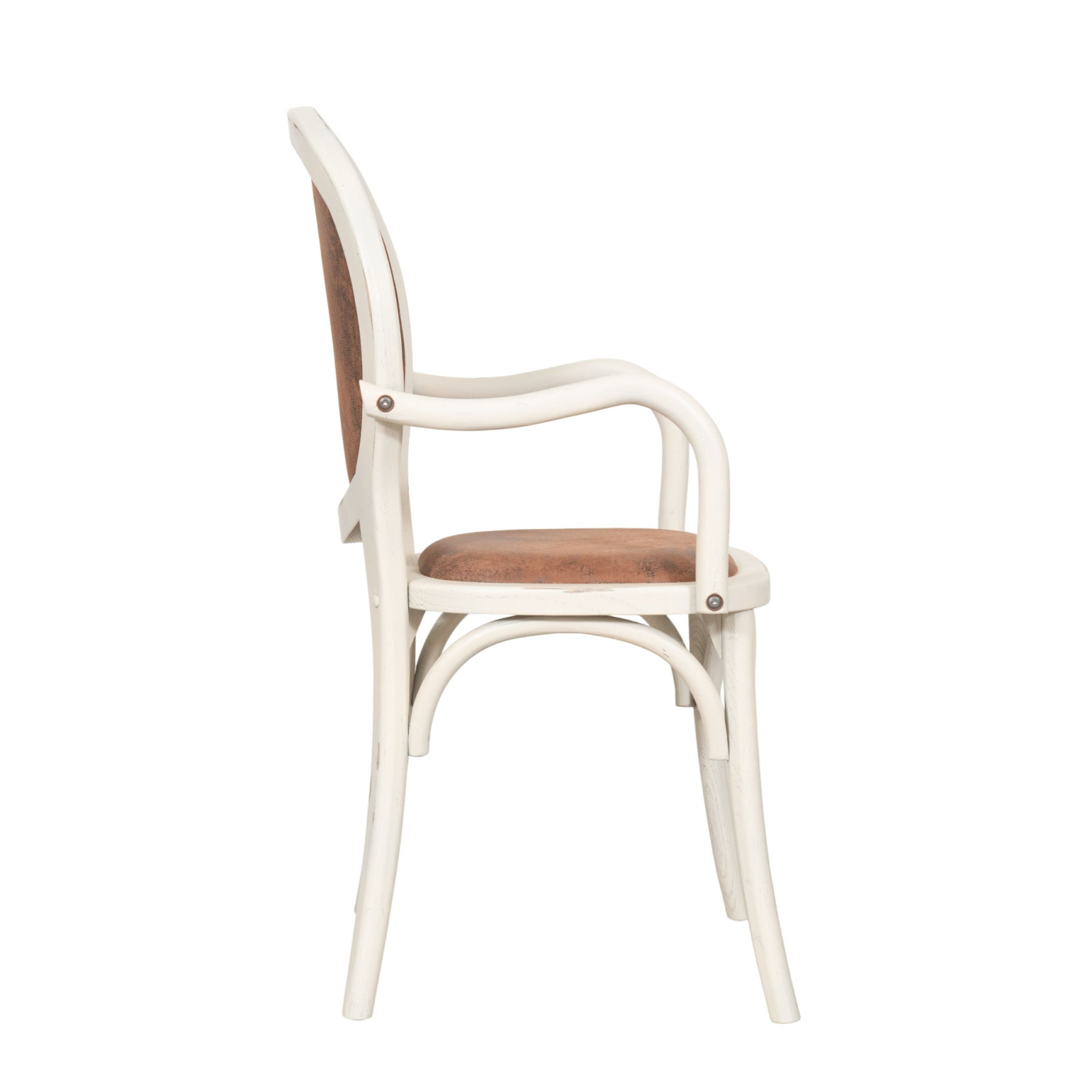Silla con reposabrazos de madera maciza y asiento acolchado en acabado blanco antiguo