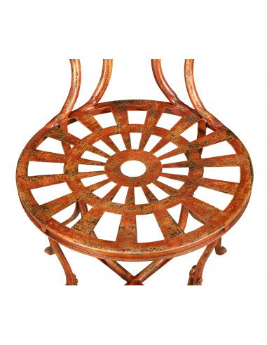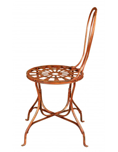 Silla de comedor de jardín al aire libre de hierro forjado con acabado rojo antiguo