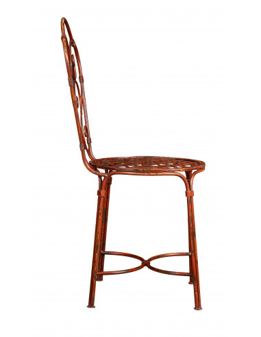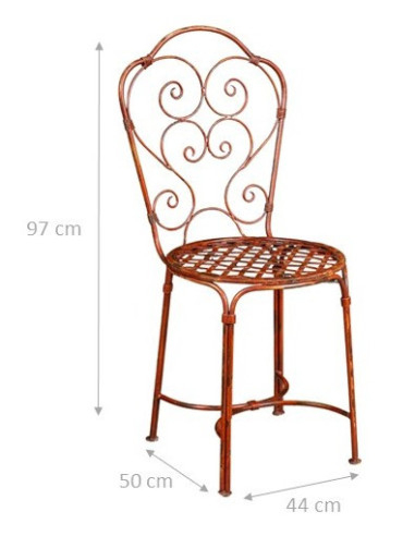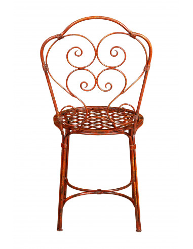 Silla de comedor de jardín al aire libre de hierro forjado con acabado rojo antiguo