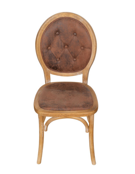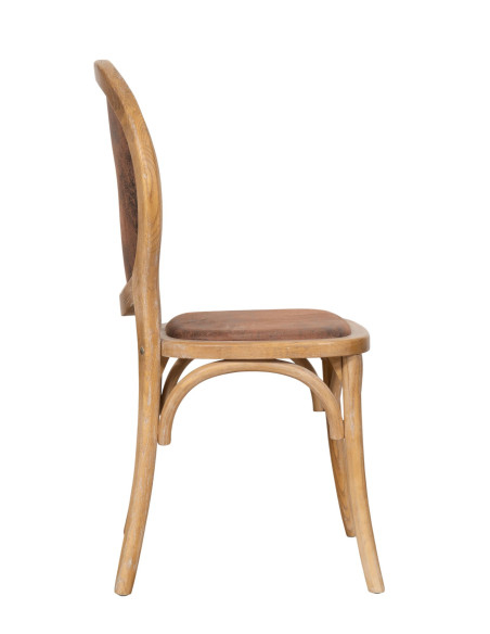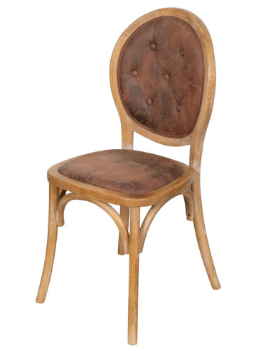 Silla de madera maciza y asiento acolchado con acabado en nogal claro
