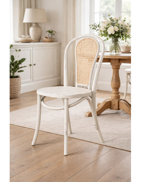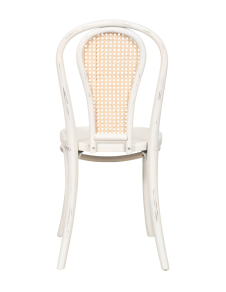 Silla de madera maciza y respaldo de paja de Viena con acabado blanco envejecido