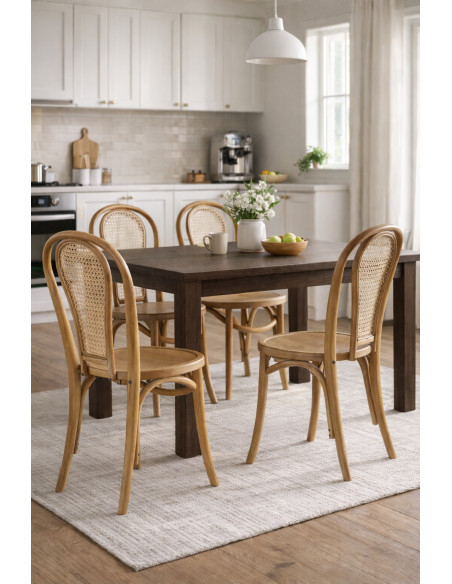 Silla de madera maciza y respaldo de paja de Viena con acabado en nogal claro