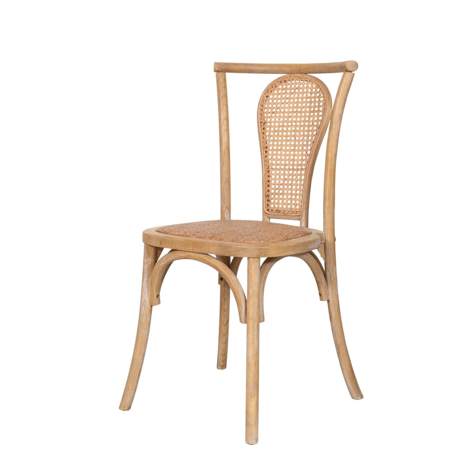 Silla de madera maciza y respaldo de paja de Viena con acabado en nogal claro