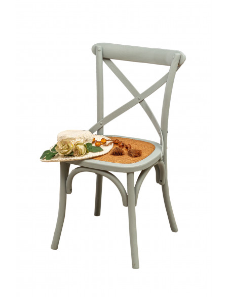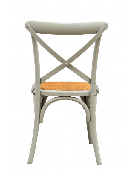 Silla Thonet Cross de madera maciza y asiento de ratán con acabado gris