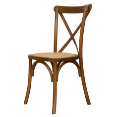 Silla Thonet Cross de madera maciza y asiento de ratán con acabado marrón envejecido apilable