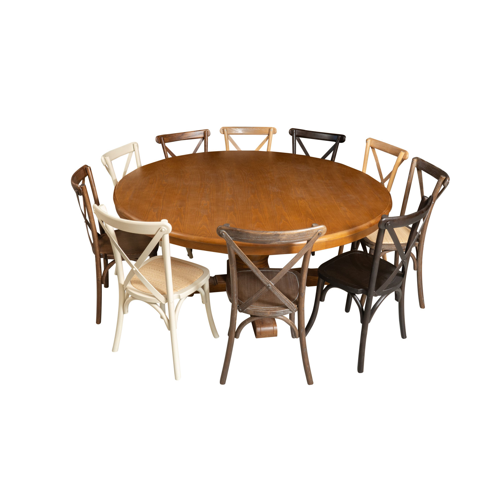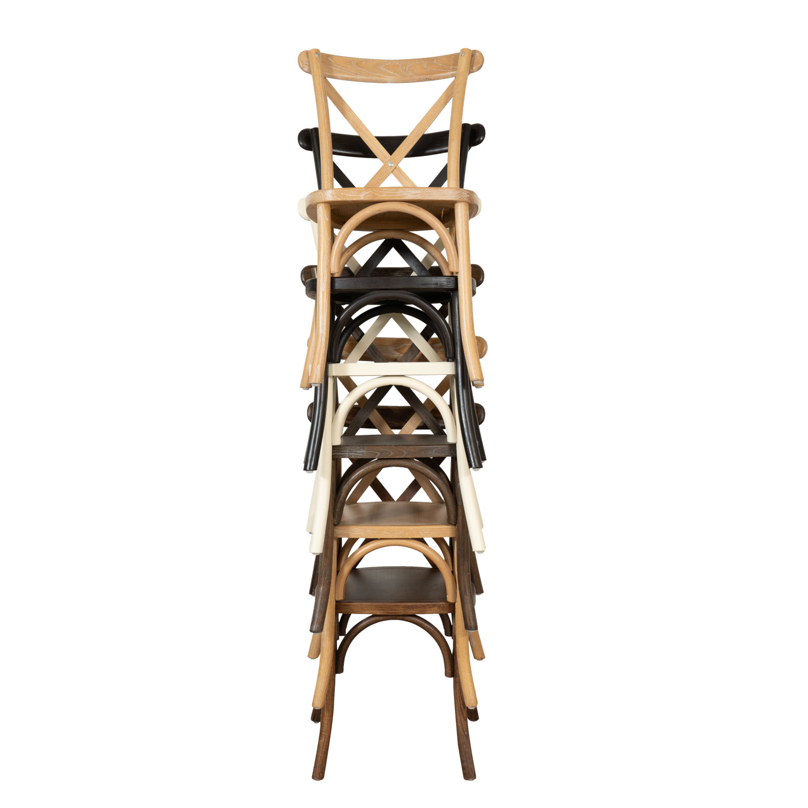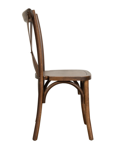 Silla Thonet Cross de roble macizo con asiento de madera y acabado nogal apilable