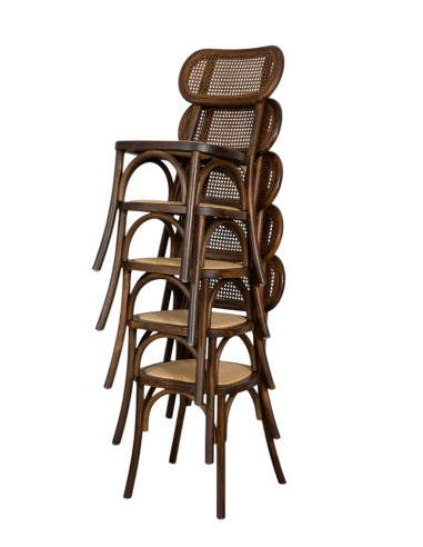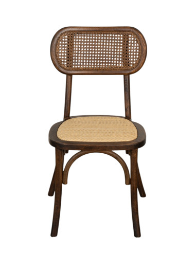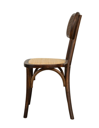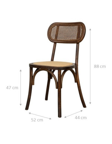 Silla de 45 cm de ancho, 42 cm de profundidad y 89 cm de altura, estilo Thonet, fabricada en madera maciza de fresno. Gracias a su diseño de bistró, es ideal para decorar cualquier ambiente o local con un estilo vintage, sin renunciar a la comodidad. Todas las medidas se refieren al espacio máximo que ocupa el artículo.