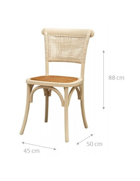 Silla Thonet de madera maciza de fresno y asiento de ratán con acabado blanco envejecido L45xPR50xH88 cm