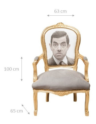 Sillón estilo francés Luis XVI, en madera maciza de haya, tallado y acabado a mano y con la pátina, la hoja de oro de dimensiones L63XPR65XH100 cm. Asiento y respaldo están tapizados a mano.
