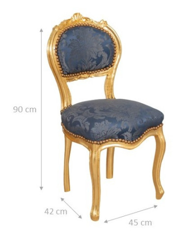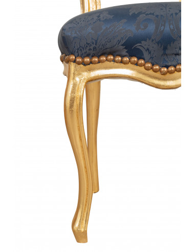 Sillón francés de estilo Luis XVI en madera de haya maciza con acabado dorado y azul