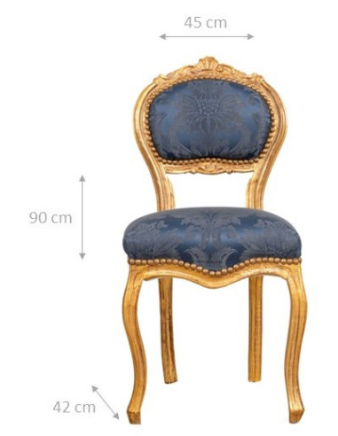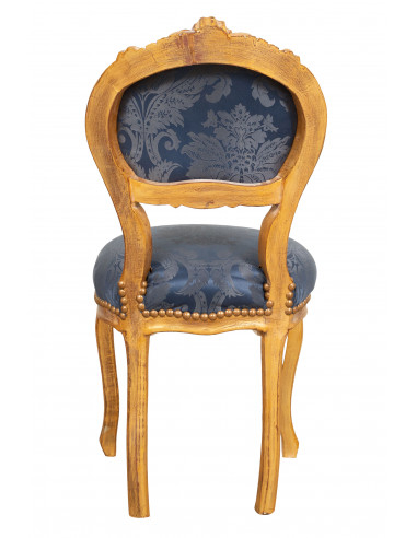 Sillón francés de estilo Luis XVI en madera de haya maciza con acabado dorado y azul antiguo