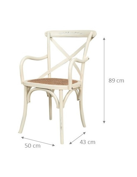 Silla con reposabrazos L45xPR42xH77 cm en estilo Thonet de fresno macizo con respaldo cruzado y asiento de fibra de ratán tejida. Gracias a su diseño bistró es ideal para amueblar en estilo vintage cualquier ambiente o habitación, sin renunciar a la comodidad.Estas sillas Thonet son ideales para añadir una elegancia indiscutible a cualquier habitación....