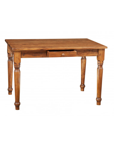 Mesa rectangular de madera maciza de tilo , de dimensiones 120x80x80 cm. Inigualable resistencia y durabilidad, y están garantizados por meticulosa artesanía Made in Italy. El cómodo cajón central hecho con juntas de cola de milano y pomo de madera, combinado con el clásico diseño, es el acompañamiento perfecto para cualquier ambiente con un toque de estilo rústico