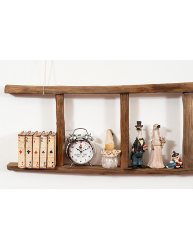 Escalera de madera de dimensiones L28xPR7xH100 cm. Reproduce fielmente tanto en estética como en construcción la antigua escalera, con los laterales hechos de un solo tronco de árbol cortado por la mitad. Un mueble muy versátil, además de una herramienta funcional para la vida cotidiana. Al estar fabricadas artesanalmente, cada escalera puede ser...