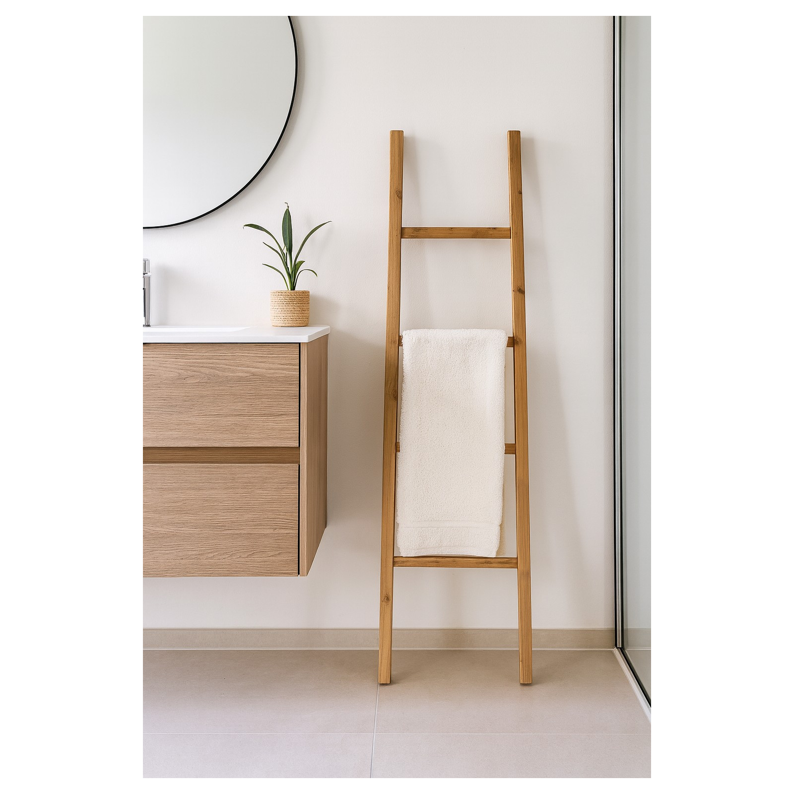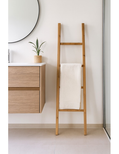 Escalera toallero de baño de madera que reproduce fielmente, tanto en estética como en construcción, las escaleras antiguas. Un complemento de decoración muy versátil, además de un utensilio funcional para la vida cotidiana. Al estar fabricadas artesanalmente, cada escalera puede ser ligeramente diferente de las demás en cuanto al acabado. Las dimensiones de la escalera son: altura 130 cm, anchura 35 cm y profundidad 4 cm.