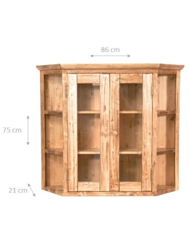 Vitrina de estilo Country de colgar de madera maciza de tilo acabado con efecto natural