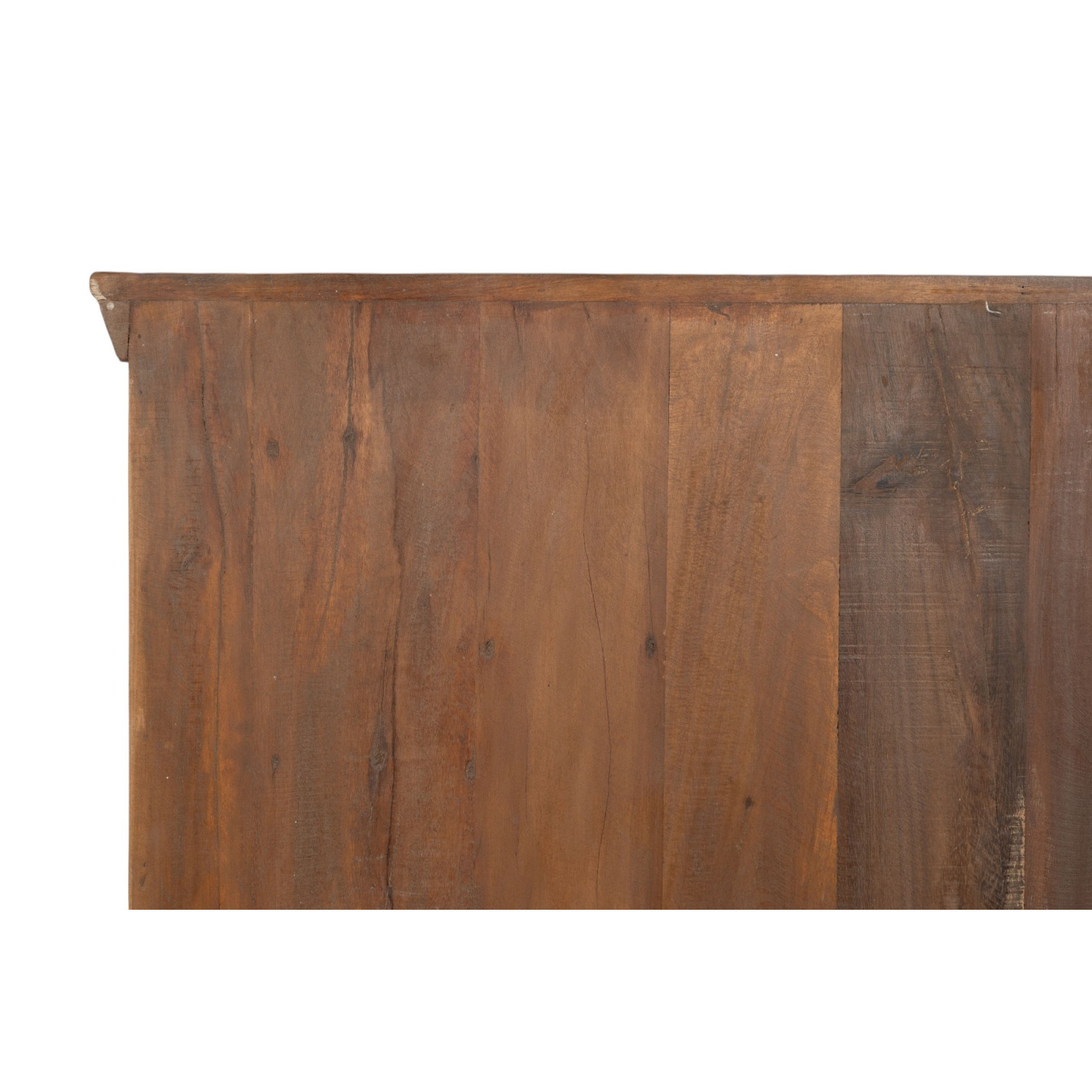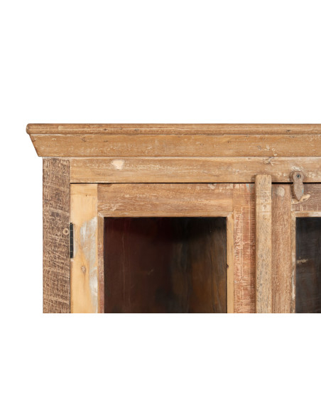 Vitrina realizada en madera maciza recuperada con unas dimensiones de 91 cm de ancho, 41 cm de profundidad y 183 cm de alto. Pintada a mano con barnices naturales, sus múltiples matices hacen que este mueble sea una pieza única. Sólida y funcional, es ideal para los amantes de los muebles antiguos y de la madera.