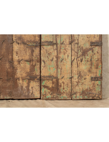 Antiikkinen ovi/portti, massiivinen tiikki, mitat 102 cm pitkä, 18 cm syvä, 195 cm korkea. Tämä ovi on peräisin tärkeiden vanhojen rakennusten purkamisesta ja restauroinnista. Hienosti restauroitu ja ulkokäyttöön käsitelty, jokainen ovi on pala aitoa ja ainutlaatuista antiikkia. Kaikki mitat viittaavat artikkelin suurimpiin kokonaismittoihin.