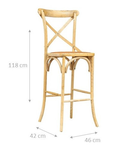 Baarijakkara Thonet kiinteästä tuhkasta ja rottinki-istuin luonnollisella viimeistelyllä L 46 x PR 42 x K 118 cm