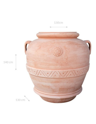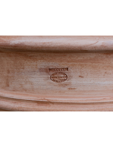 Täysin käsintehty maljakko toscanalaisesta marmorisavesta, halkaisija 130 cm, korkeus 140 cm. Valmistus ja poltto noudattavat vanhoja toscanalaisia perinteitä. Saven laatu ja polttojärjestelmä tekevät tuotteesta erittäin kestävän pakkasta ja kaikkia ilmakehän vaikutuksia vastaan. Koska nämä ovat käsintehtyjä esineitä, jotka tekevät jokaisesta esineestä ainutlaatuisen, viimeistely ei välttämättä vastaa kuvaa. Biscottini tarjoaa laajan valikoiman sisä- ja ulkotilojen sisustustarvikkeita, jotka ovat välttämättömiä kaikenlaisten huoneiden ja ympäristöjen sisustamiseen. Se on tarkoitettu maalaismaiseman ja rähjäisen sisustuksen ystäville ja niille, jotka haluavat yleensä sisustaa kotinsa maalaismaisemalla. Kaikki mitat viittaavat artikkelin suurimpiin kokonaismittoihin.