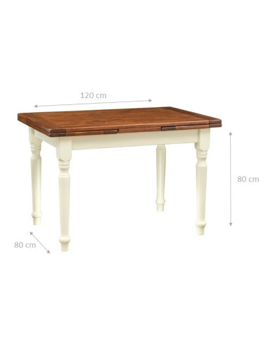 Tämän laajennettavan pöydän Country-tyyli korostaa sen kestävyyttä, joten se sopii erinomaisesti keittiökalusteisiin. Se sopii myös täydellisesti mihin tahansa kodin sisustukseen monipuolisuudensa ansiosta. Tämä ja monet muut tuotteet ovat osa laajaa sisustusluetteloa, jonka Biscottini tarjoaa kodin sisustamiseen.Kaikki mitat viittaavat tuotteen enimmäiskokoon