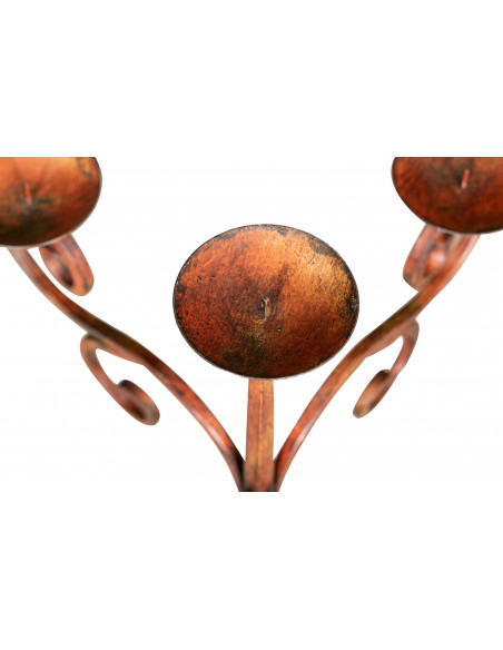 Käsintehty takorautainen lattiakynttilänjalka antiikkipunaisella viimeistelyllä, L49XPR49XH94 cm