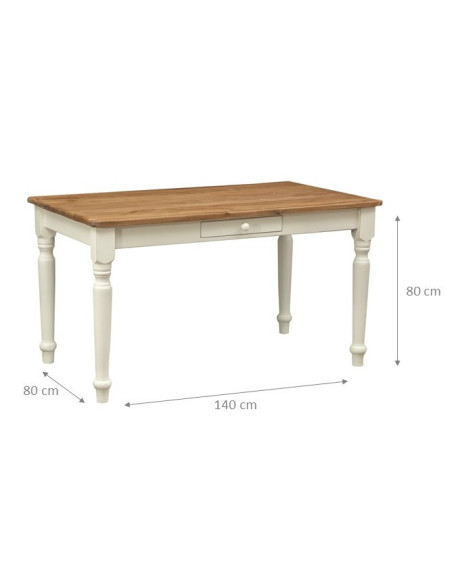 Kiinteä maataulukko massiivipuuta, vanhana valkoisella rakenteella ja luonnollisella päällä. Valmistettu Italiassa