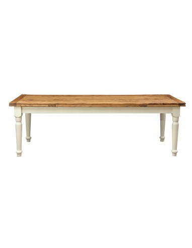 Maan laajennettava pöytä massiivikalkipuusta vanhennetulla valkoisella rakenteella ja luonnollisella päällä L250xPR100xH80 cm. V