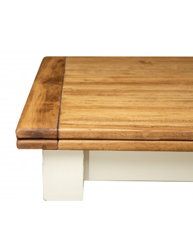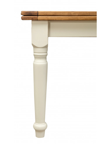 Maan laajennettava pöytä massiivikalkipuusta vanhennetulla valkoisella rakenteella ja luonnollisella päällä L220xPR100xH80 cm. V
