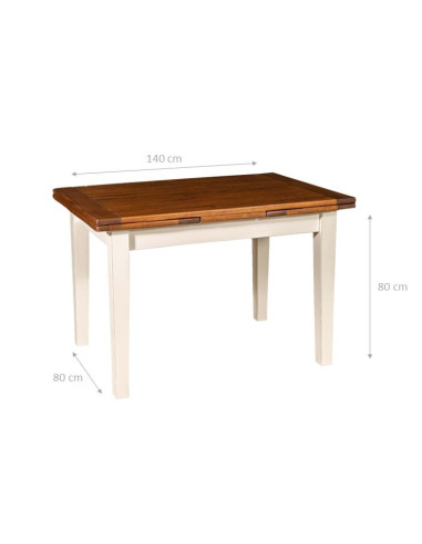 Suorakulmainen kalkkipuuta oleva pöytä, joka voidaan pidentää jopa 185 tai 230 cm: iin kahden käytännöllisen 45 cm: n jatkeen ansiosta. Se on ihanteellinen täydentämään ympäristöä maalauksellisella ruudulla, ja sen vakauden ja laadun takaa erehtymätön ja huolellinen Made in Italy -käsityötaito. Mitat: pituus 140 cm syvyys 80 cm korkeus 80 cm. Avoin jatke: pituus 185 cm. Täysin auki: pituus 230 cm. Tämän pöydän värikkyyden ansiosta, joka voidaan sijoittaa mihin tahansa maalaistaloon, keittiön huonekalut ovat yksinkertaisempia. Laaja Biscottini-kalusteiden luettelo antaa sinulle mahdollisuuden täydentää kodinsisustustasi monilla ratkaisuilla. Kaikki mittaukset viittaavat kohteen maksimikokoon
